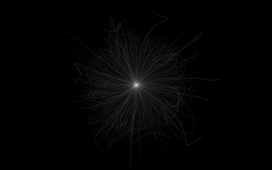 The second component of this system is what creates the sound and visualization based on the values that it receives from the previous program. Using triangle oscillators, the pitch of the system varies based on x and y positions of the motion detected, and the amplitude of the system depends on the maximum motion value (i.e. the more motion detected, the louder it is). Furthermore, the visualization is drawn by bezier curves that use the x position, y position and maximum motion value of the previous frame and the current frame. Therefore, human motion and interaction with the system in a specific space creates a unique piece of music and ensuing visualization. In this way, this particular system is an antenna for motion or change within a space, where the interaction between human and computer is transmitted into two different sensory modalities: sound and 2D visual interpretation.